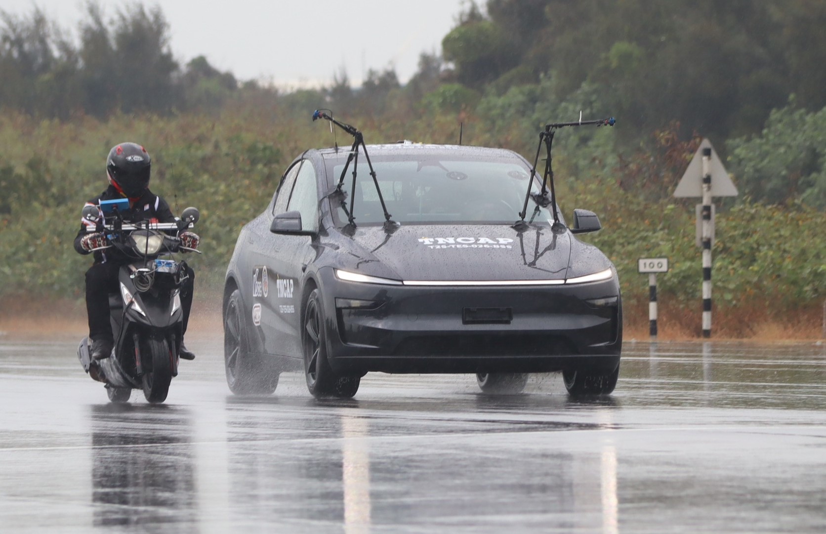 本次見證活動展現交通部對用路者生命安全的重視,也回應社會對弱勢族群交通安全的高度關切,同時向社會大眾宣達「碰撞事故預防」的重要性。以TNCAP更嚴苛的第二版試驗標準來衡量受驗車輛的主動安全防護性能,驗證該車輛安全系統於事故發生前提供駕駛者警示訊息以及減緩或避免碰撞的能力,本次見證活動展示兩項國內常見的道路交通事故情境試驗,分別為: