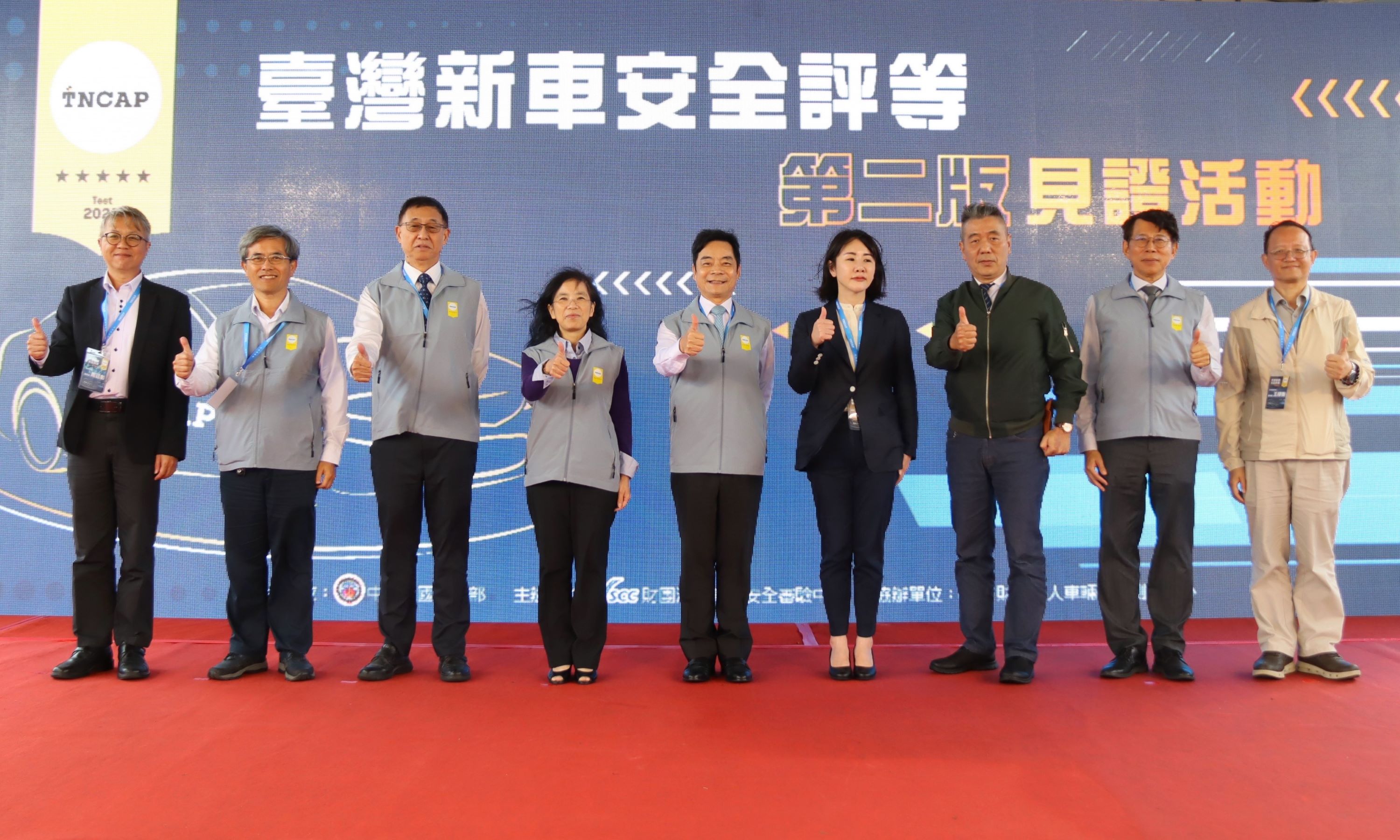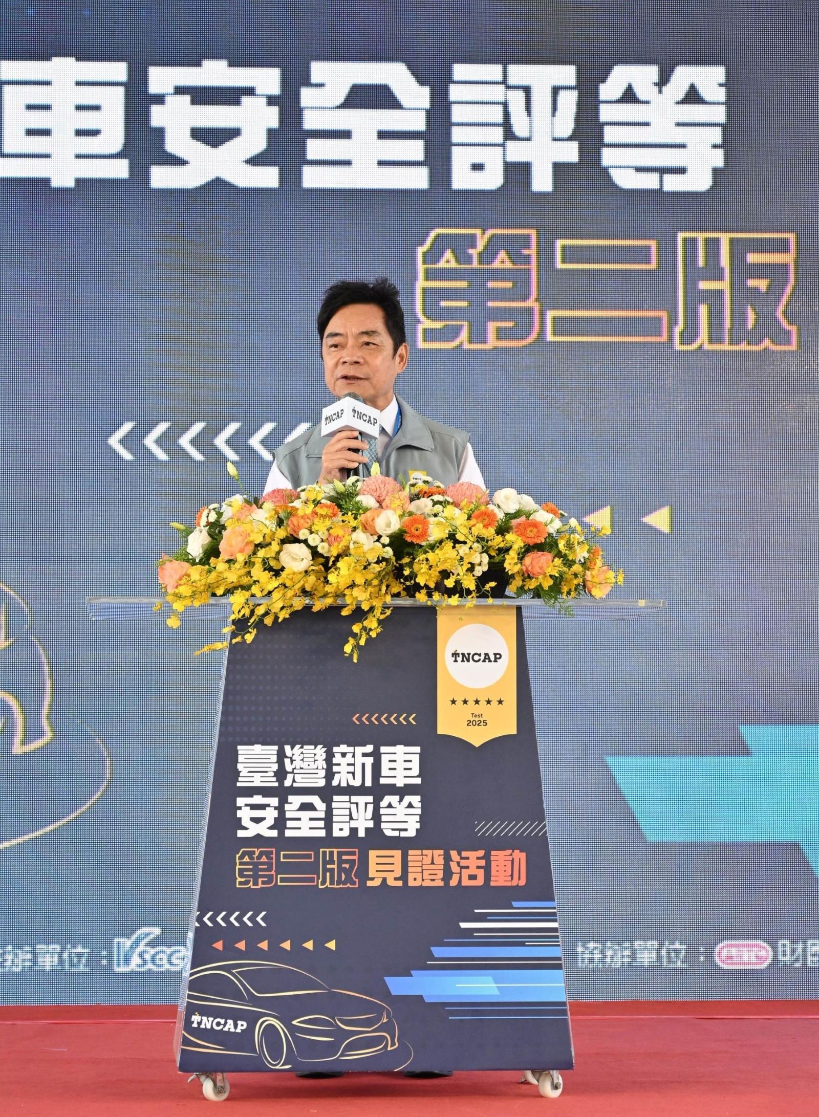 為提升國內車輛安全性並降低交通事故傷亡率,交通部積極推動「臺灣新車安全評等計畫(簡稱TNCAP)」,今(114)年10月28日於財團法人車輛研究測試中心舉辦「臺灣新車安全評等第二版見證活動」,由指導單位-交通部伍勝園政務次長主持,並邀請立法院謝衣鳯委員、國防戰略與資源研究所蘇紫雲所長、車輛中心王正健董事長上台致詞,期勉TNCAP制度持續推動並提供民眾更多元的購車資訊;本次活動亦廣邀產、官、學、研及媒體代表共同參與見證,展現交通部積極推動TNCAP制度的成果,活動在熱烈掌聲中圓滿成功。